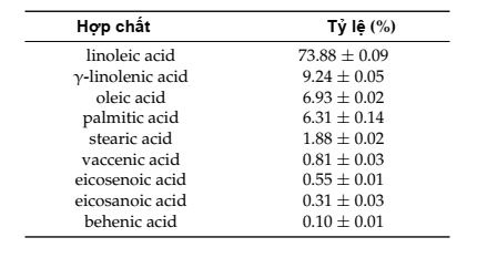 Bảng 1. Thành phần các acid béo có trong Dầu hoa anh thảo (Evening primrose oil – EPO)